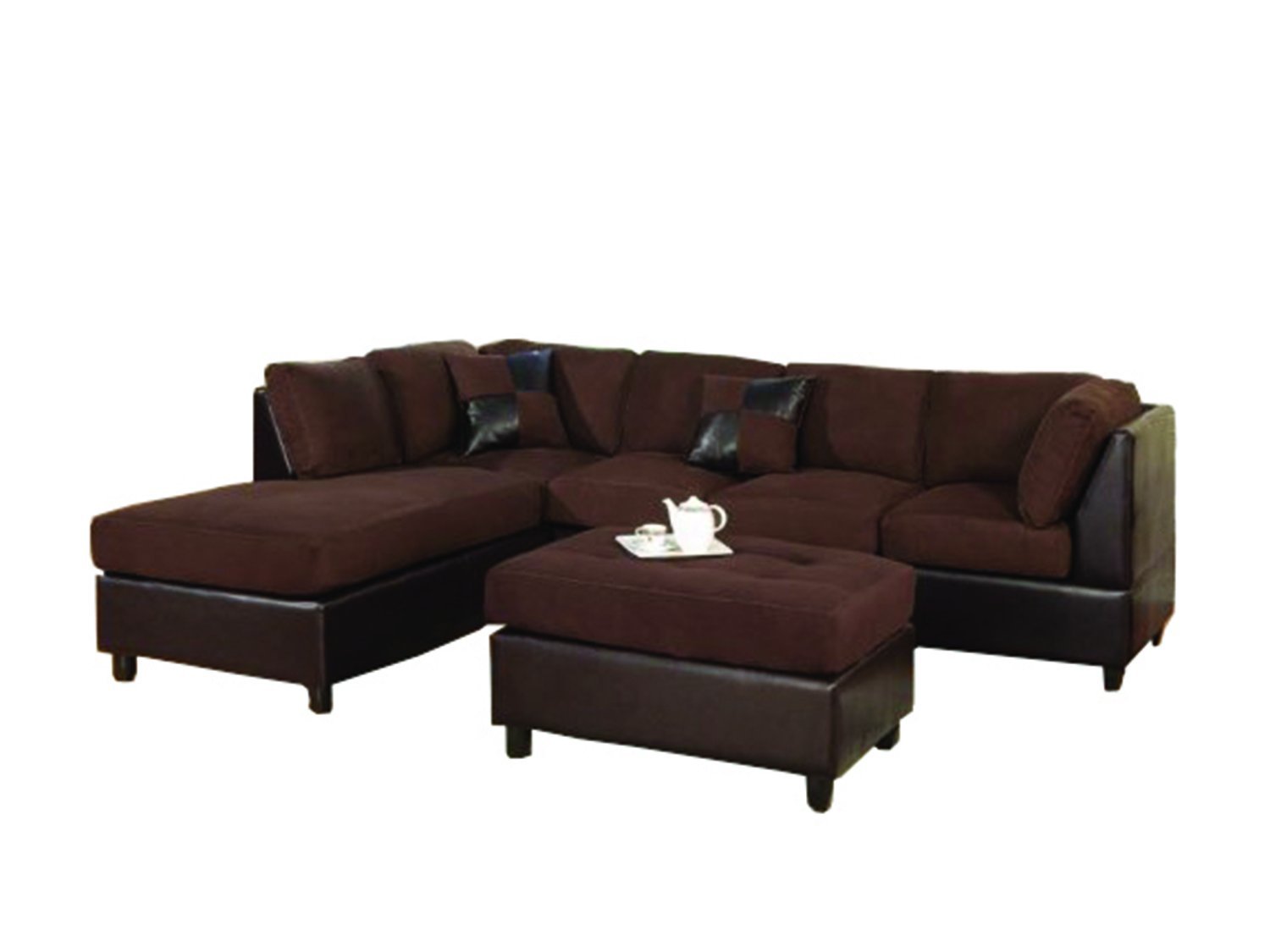 Bobkona Hungtinton Microfiber/Faux Leather 3-Piece Sectional Sofa Set, Chocolate